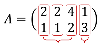 아래의 A 행렬에 대해서, 열 벡터들의 독립/종속을 살펴보자.