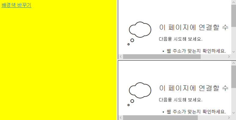 left.html 에서는 '배경색 바꾸기'를 누르면 배경색이 노란색으로 바뀌도록 하였다.