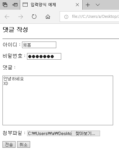 <title> 입력양식 예제 </title>