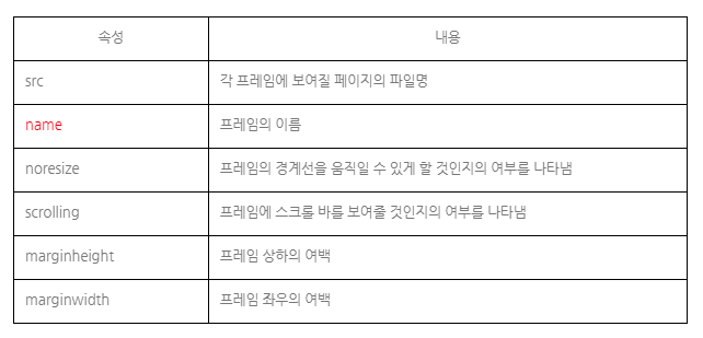 <frameset> 태그의 rows, cols 속성으로 나누는 기준에 대한 상하좌우가 정의됨