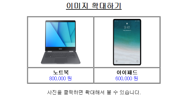 <td width=200><img width=150 height=150 src=노트북.jpg alt=노트북 onClick=openwin('노트북.jpg')></td>