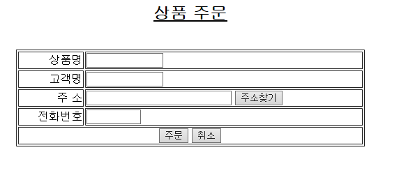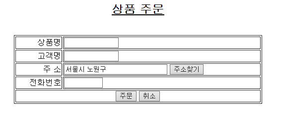 <td><input type=text name=addr size=30> <input type=button value=주소찾기 onClick=searchAddr()>