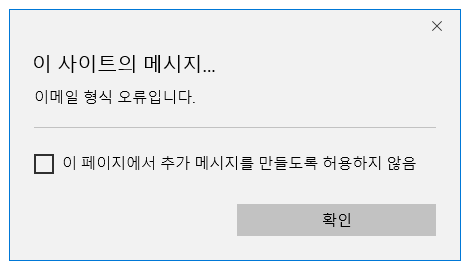 이름을 입력하지 않았거나 입력한 이메일에 '@' 기호가 없는 경우 경고 메시지를 띄우기